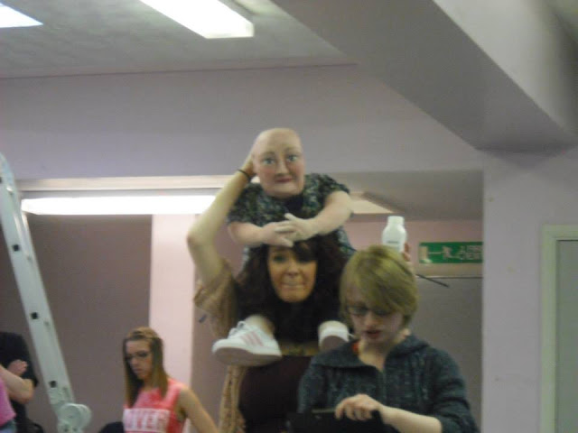 We had our final rehearsal tonight for Coke Floats & Chemo, and here are the photos to prove it! I still can't believe this whole thing is happening, it's all very exciting, stacks of fun, and the perfect antidote to the misery of having cancer. I also can't believe how absolutely awful I look in every single one of the photos...... I need a new face, liposuction everywhere and a whole new range of facial expressions ...... all by lunchtime Saturday, exactly 36 hours away. Unlikely, so I'll just have to brazen it out. Everyone in the cast is amazing, everyone pulls together and makes the whole thing just work somehow. It's all quite technical, the props are really imaginative, and little miniYvonne virtually steals the show on more than one occasion....